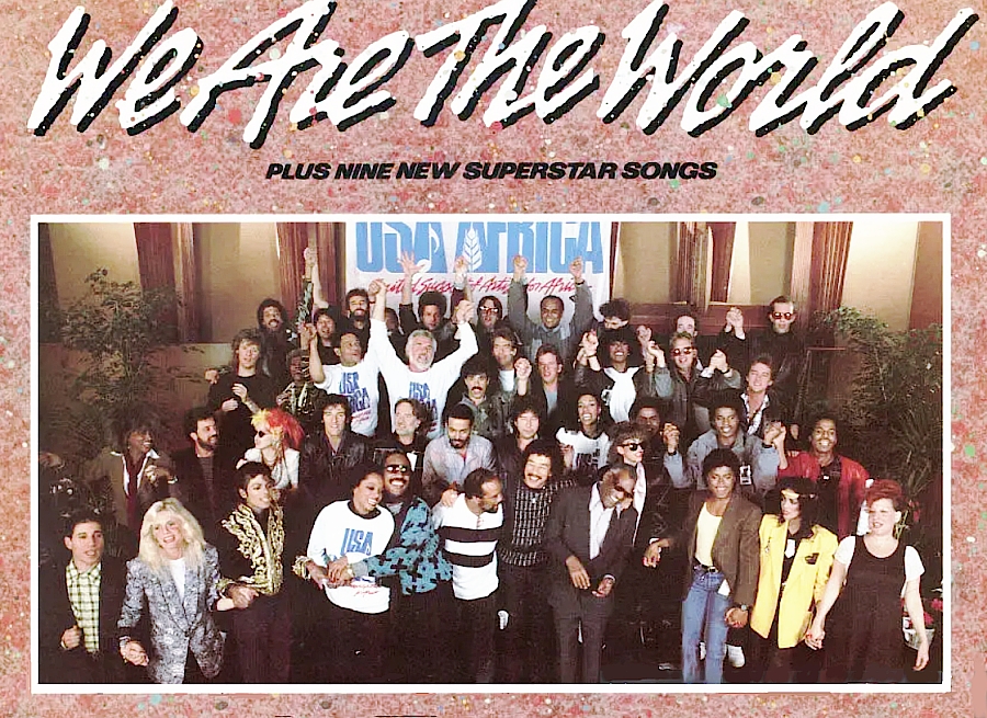 ウィ・アー・ザ・ワールド(We Are The World)は、1985年にアメリカで発売された歌で、著名なアーティストが「USAフォー・アフリカ」として集結して完成させた。 ハリー・ベラフォンテの構想をもとに、イギリスで活躍するミュージシャン、ボブ・ゲルドフが提唱したバンド・エイドの成功に触発されてアフリカの飢餓と貧困層を解消する目的で作られたキャンペーンソング。 作詞・作曲はマイケル・ジャクソンとライオネル・リッチーが共作で行い、プロデュースはクインシー・ジョーンズが担当した。 |